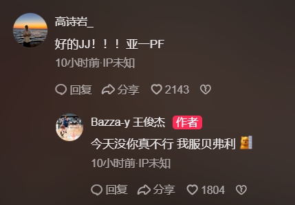 王俊杰则是回复说:“今天没你真不行 我服贝弗利”