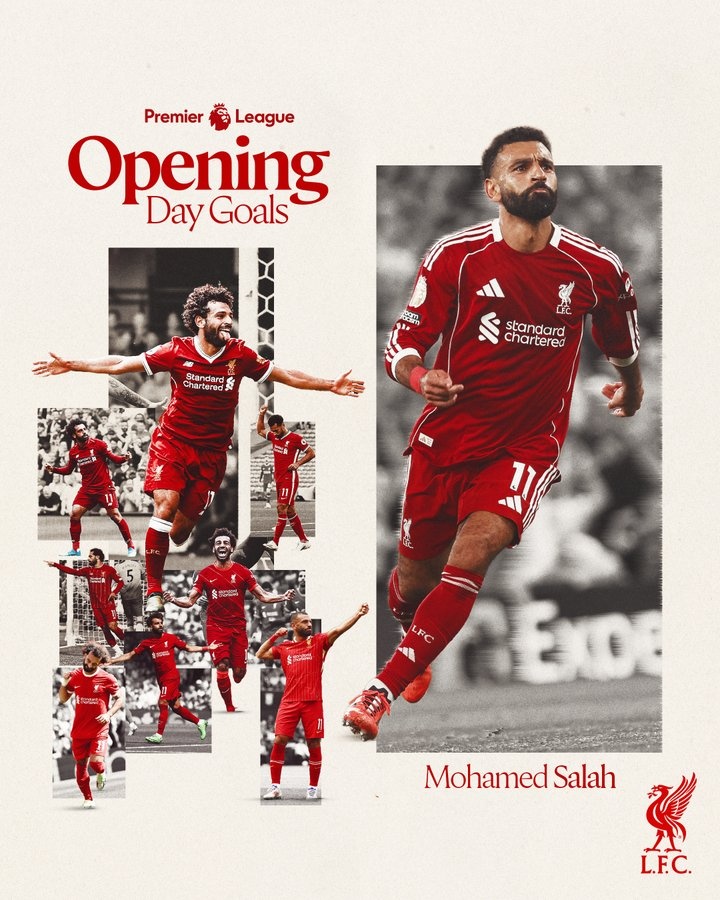 8月17日,利物浦官方推特发布萨拉赫庆祝海报,纪念其创下英超赛季首战10粒进球的纪录。