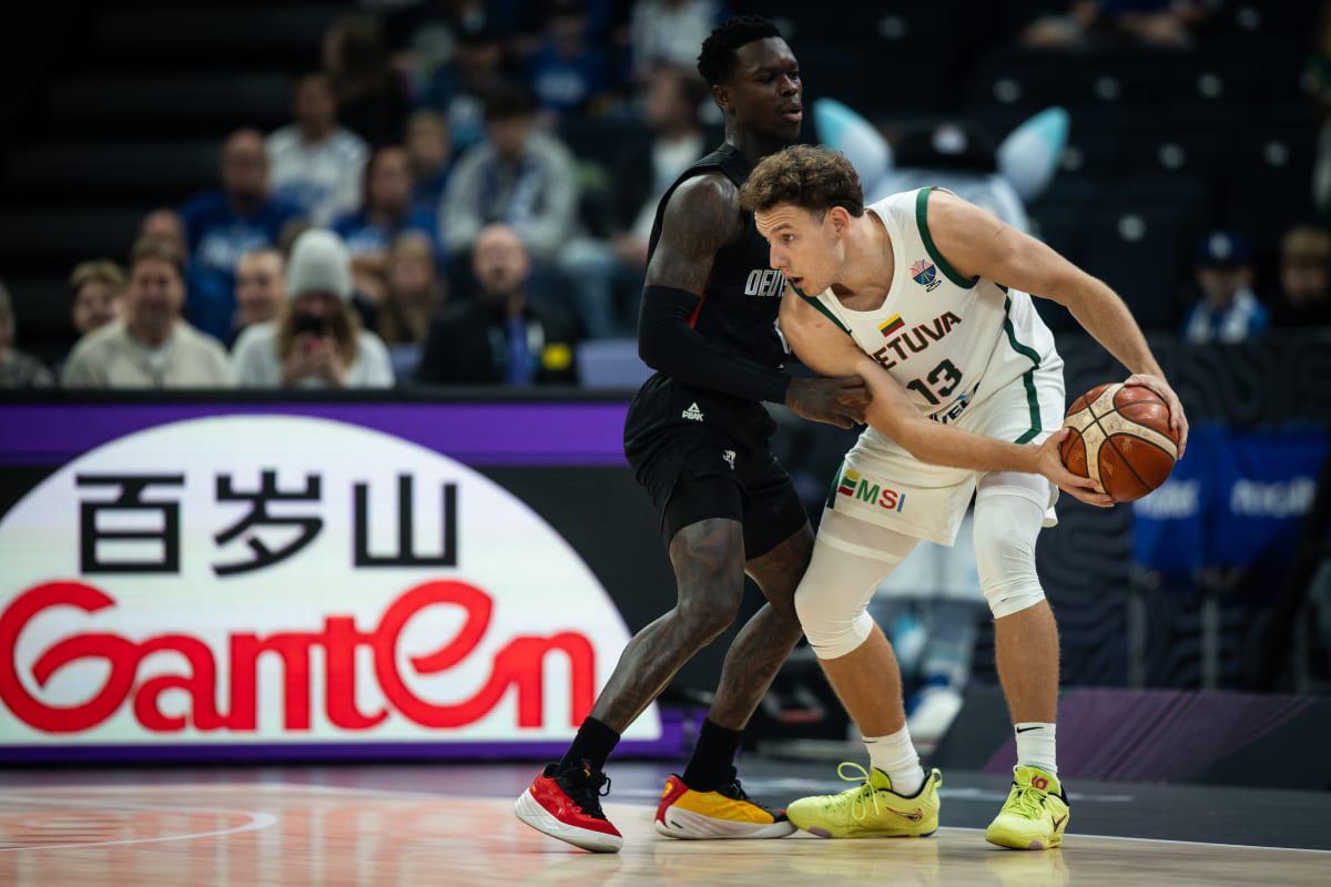 本场比赛中,立陶宛队虽然输掉了比赛,但是球队的先发控卫罗卡斯-约库巴蒂斯(Rokas Jokubaitis)的表现还是相当突出的。约库巴蒂斯全场出场29分50秒,投篮15中7,三分线外4中1,罚球6中5,得到了全队最高分20分外加3篮板7助攻1抢断的数据,还有5次失误和1次犯规,正负值为-16。约库巴蒂斯在进攻端也是通过各种方式拿下了大量的分数,他也是有着相当丰富的进攻手段,而且他也展现出了出色的传球能力和组织能力。不夸张地说,要不是有约库巴蒂斯的一系列出色表现,我们都不知道立陶宛队到底会在本场比赛中输多少分。约库巴蒂斯完全就是立陶宛队的领军人物,他靠着自己的努力也是帮助了球队守住了下限。