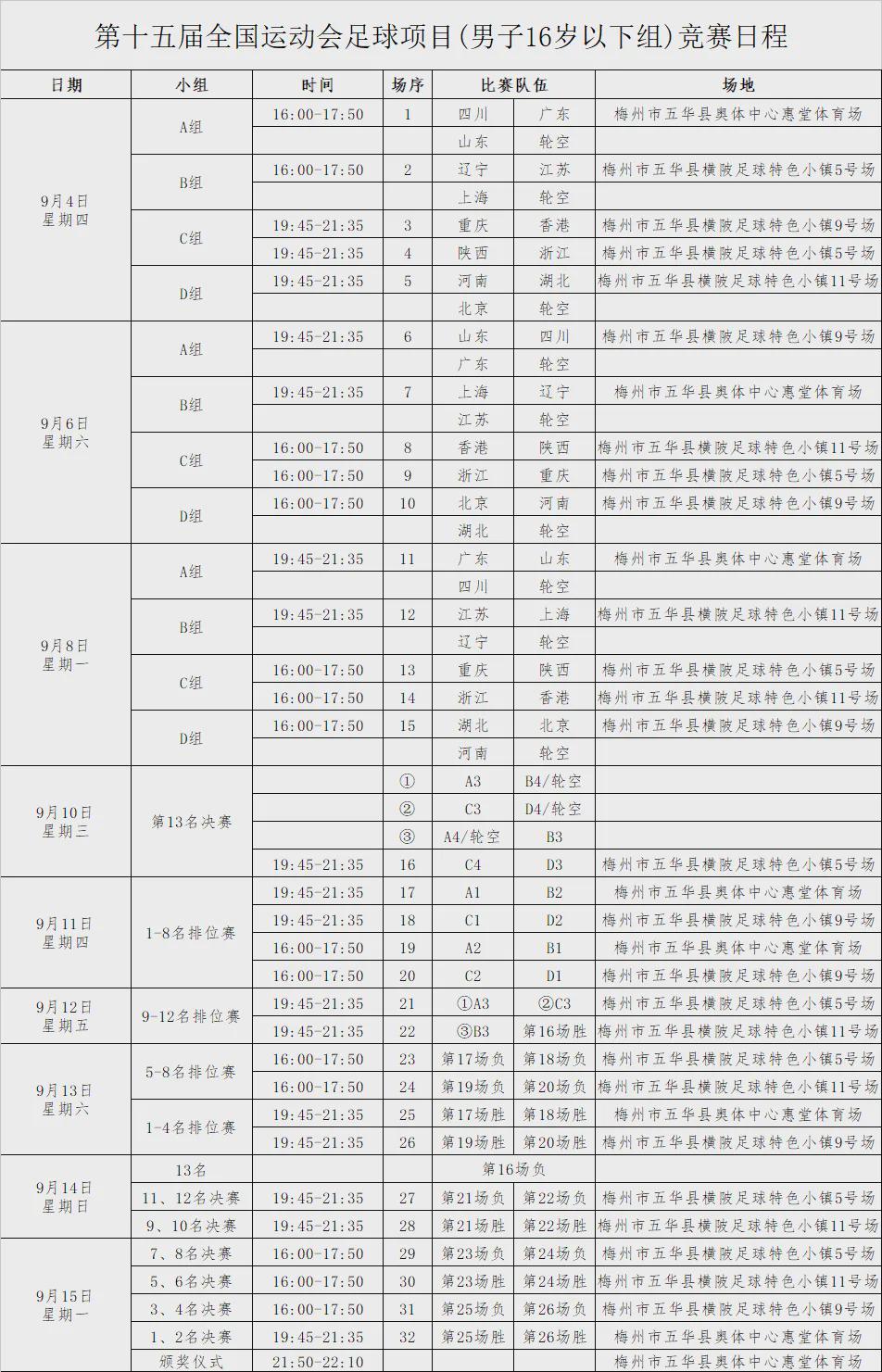 U16男足竞赛日程