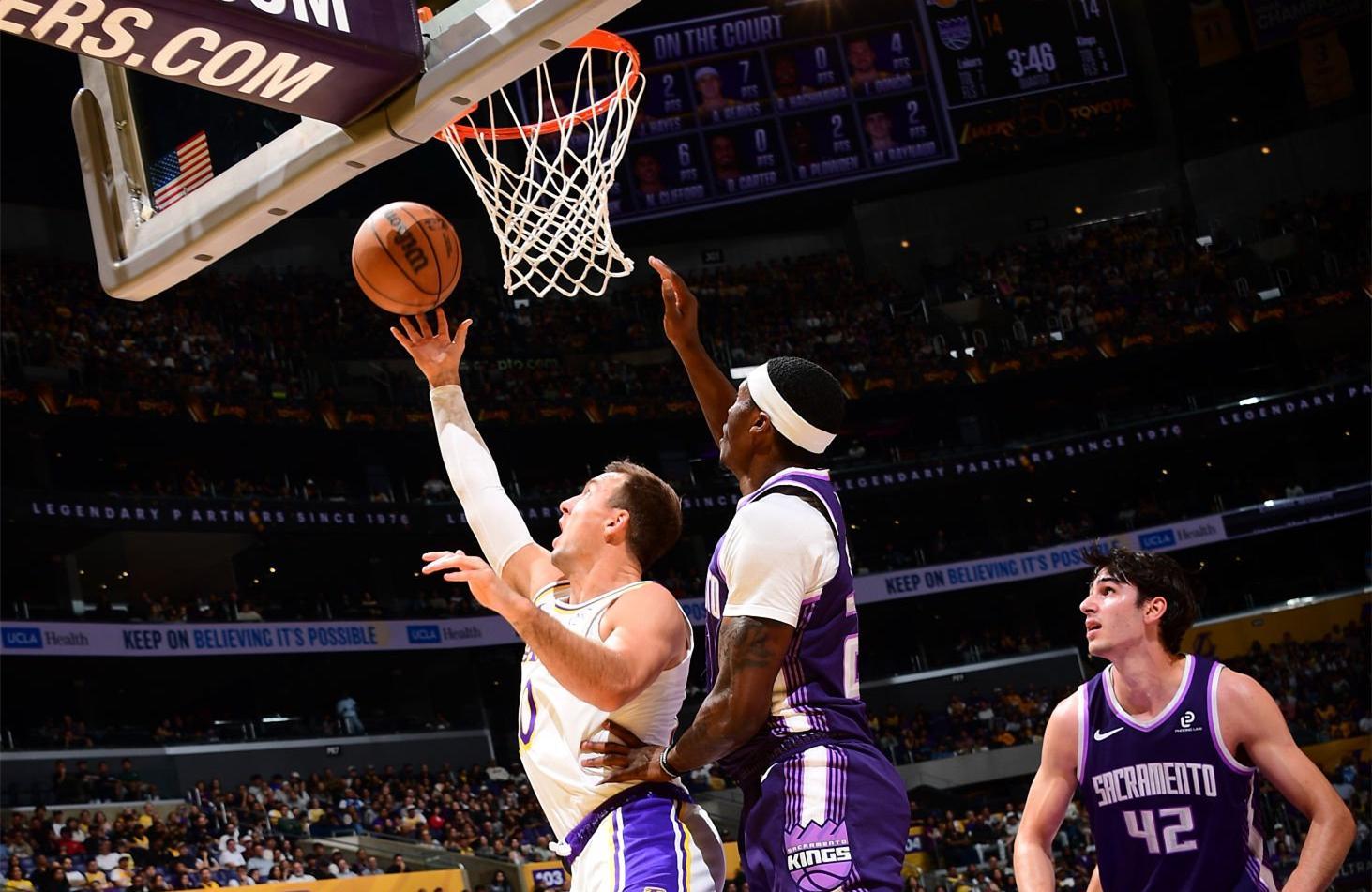 肯纳德不仅擅长投三分球,他的传球能力被很多人忽视了。对阵国王的比赛,肯纳德送出了5次助攻。不得不说,湖人用文森特和一个二轮签换来肯纳德,对于球队外线火力有了一定的提升,毕竟文森特已经被证明难堪大任,而肯纳德对于湖人的帮助立竿见影。