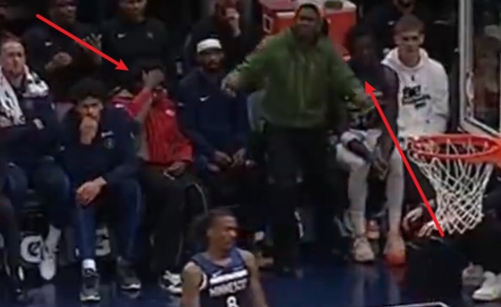 麦克丹尼尔斯捂脸(红衣服) 爱德华兹无语摊手(绿衣服)